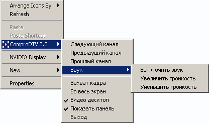 В режиме вывода видеоизображения на поверхность рабочего стола в системное контекстное меню добавляется соответствующий пункт, что позволяет обойтись без панели управления, значка в системном трее и т. д. Реализована и совместная работа этого режима с многоканальным просмотром, при которой один поток выводится на рабочий стол, а остальные отображаются в оконном режиме.
