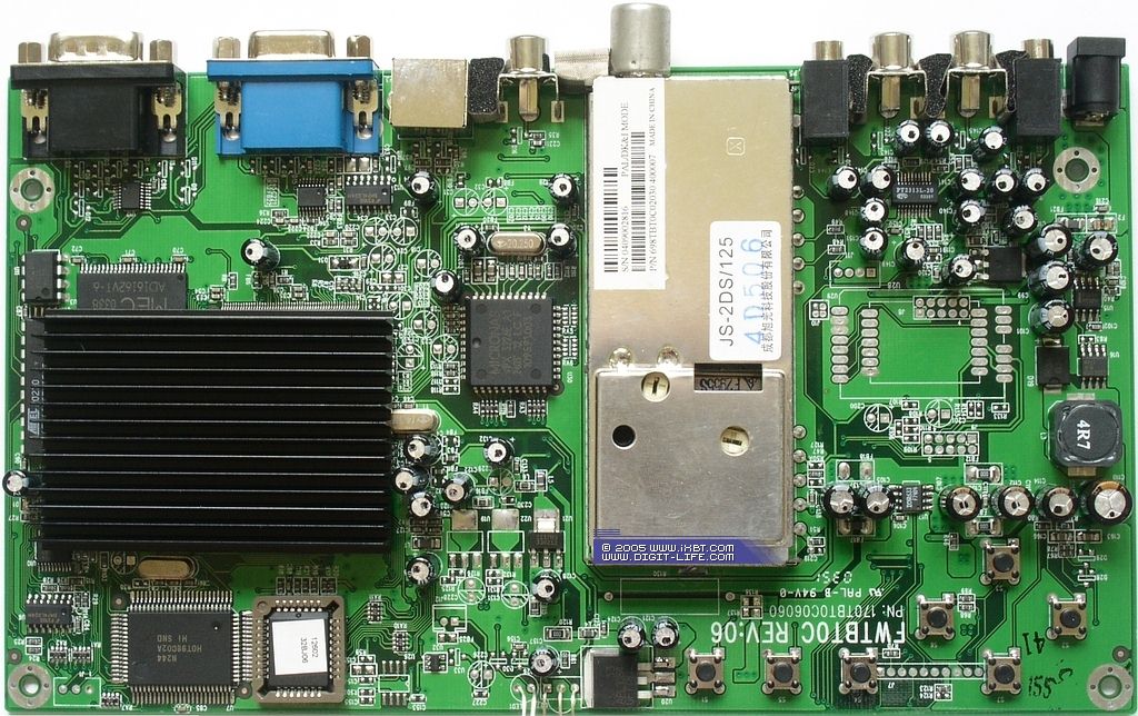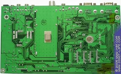 Радиатор скрывает видеопроцессор DPTV-SX от Trident Microsystems, Inc. Оцифровка сигнала осуществляется при помощи декодера VPX 3226 E производства Micronas.