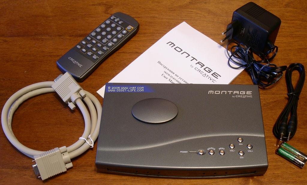 В настоящее время рынок TV-тюнеров, подключающихся «в разрыв» между монитором и видеокартой, можно считать сформировавшимся. Практически все производители оборудования для просмотра телевизионных программ на компьютере имеют в своём ассортименте подобные модели. Тюнер от известной компании Creative Technology, Ltd. появился в продаже достаточно давно. Таким образом, оснований рассчитывать на использование последних технологий не так уж много. Тем не менее, на рынке эта модель присутствует, что даёт нам право рассмотреть её более пристально. Отметим определённую иронию, проявившуюся в названии этой модели. Автономные тюнеры не имеют возможности видеозахвата с последующим монтажом. Впрочем, позиционируется Montage тоже своеобразно, как Monitor-to-TV Converter HUB. Хорошо, что встроенный TV-тюнер не забыт в описании возможностей.