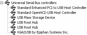 После установки в разделе USB Controllers появляется VGA2USB by Epiphan Systems Inc.