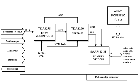 Парадоксальная ситуация — на данный момент три TV-тюнера, оснащенные микросхемами, основаны на разных сочетаниях приемной части и АЦП: Pinnacle PCTV Pro с MicroTune MT2032 + Conexant Fusion 878A, MSI TV@nywhere Master MS-8606 с MicroTune MT2050 + Conexant CX2388x и рассматриваемый в этом обзоре FlyTV Platinum с Philips TDA8275 + Philips SAA713x.