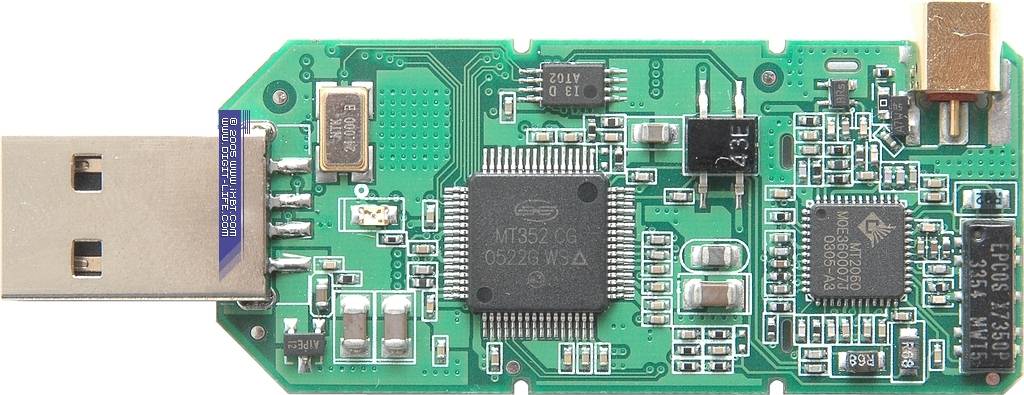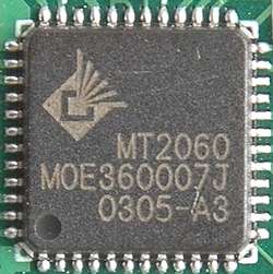 Для приёма сигнала используется экономичный (1W) ВЧ-блок МТ2060 производства Microtune, Inc.