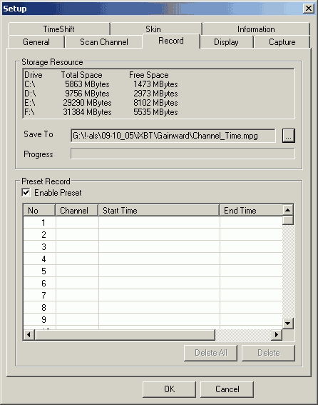 Планировщик находится в настройках записи под заголовком Preset Record. Возможность отключения компьютера после окончания записи отсутствует. Список доступных заданий насчитывает 100 позиций.