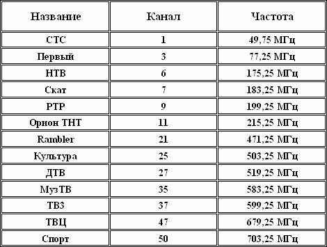 Список эфирных каналов при тестировании