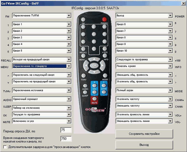 Доступна настройка всех функций пульта.