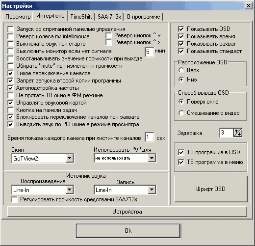 В разделе Интерфейс находится опция передачи звука по шине PCI, поддерживаемая Philips SAA7134HL.