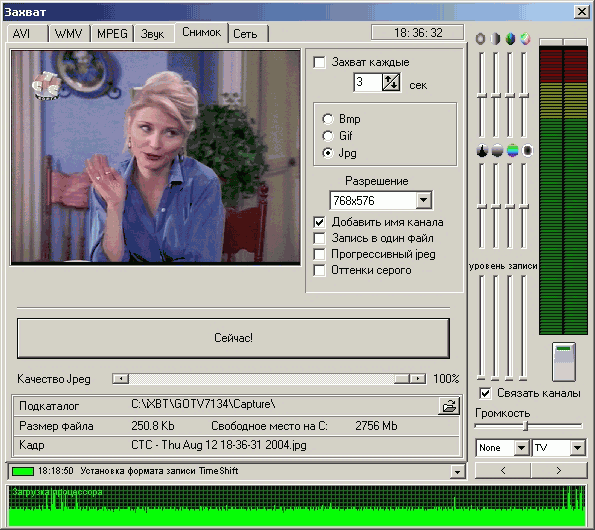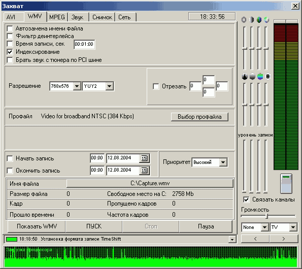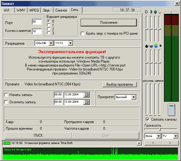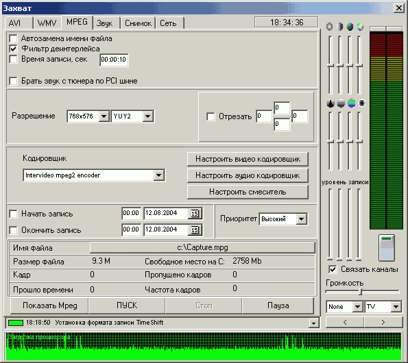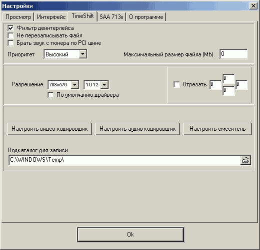 Функция Timeshift использует кодек от InterVideo, причем доступна настройка всех параметров компрессии. Возможность передачи звука по шине PCI присутствует и здесь.