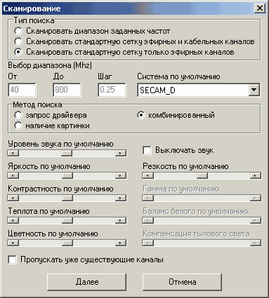 - Три метода поиска каналов (по наличию изображения, по наличию сигнала и комбинированный)