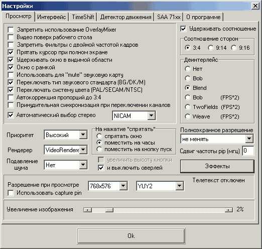 В отличие от GOTVIEW PCI DVD, для работы фильтров шумоподавления используется центральный процессор.