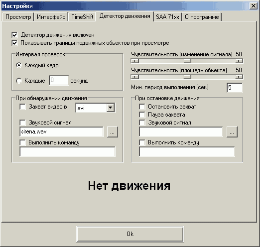 Работа детектора движения описывалась в обзоре GOTVIEW PCI DVD.