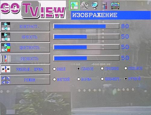 В настройках изображения присутствует выбор режимов работы системы шумоподавления. Платой за незначительное снижение четкости стало отличное качество картинки на моем 11 канале (215,25 МГц) с неуверенным приемом. Причем для борьбы с помехами оказалось достаточно режима WEAK (СЛАБОЕ). Кроме ручной настройки параметров изображения, предусмотрено три предустановленных режима.