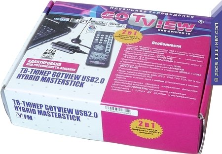 Ориентированная преимущественно на российский рынок компания GOTVIEW начала свой путь со ставки на возможности штатного ПО, затем перепрофилировавшись в единственный отечественный бренд, специализирующийся на тюнерах, оснащённых аппаратными MPEG2-кодировщиками. Однако подобные устройства сложно совместить с начальными ценовыми диапазонами, поэтому со временем пришлось, так сказать, вернуться к истокам. Мы уже рассматривали бюджетный гибридный PCI-вариант PCI Hybrid, логично, что подобное решение было предложено и для интерфейса USB. Свою роль в отсутствии встроенных средств аппаратного сжатия также сыграло позиционирование устройства, получившего название USB 2.0 Hybrid MasterStick, в сегмент сверхкомпактных (т. н. Pen Drive size) USB TV-тюнеров.