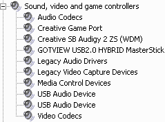 После установки драйвера в разделе Sound, video and game controllers появляется устройство с не менее предсказуемым, чем у старшей модели, названием GOTVIEW USB2.0 HYBRID MasterStick.