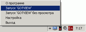 В системном трее появляется иконка программы дистанционного управления, также исполняющей обязанности резидентной программы планировщика. Напомним, что в последних версиях GoTView PRO появилась возможность запуска программы с отключенным просмотром.