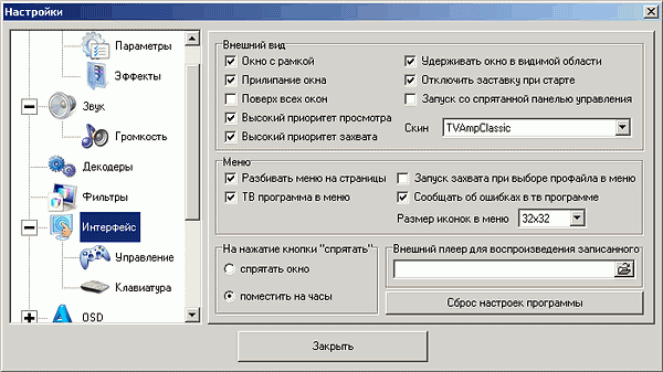 Уникальной возможностью программы является подключение сторонних Direct Show (DS) фильтров и DirectX Media Objects (DMO) как при просмотре, так и при записи, для чего существует соответствующий раздел.