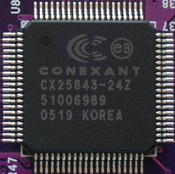 10-битный CX25843-24z производства Conexant Systems, Inc. имеет поддержку декодирования всех существующих стандартов стереозвука, эквалайзер и регулировку баланса. Отметим, что ревизия АЦП на USB2.0 DVD Deluxe отличалась — 43 вместо 24z.