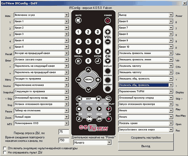 Не стоит забывать об эмуляции функций мультимедийных клавиатур и сочетаний клавиш, позволяющих использовать пульт в сторонних приложениях, таких как MS MediaPlayer, Zoom Player, BSPlayer, Winamp и т. д. На случай предотвращения потенциальных конфликтов в настройках предусмотрено отключение этой функции.