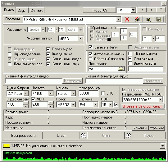 К уникальной возможности обрезки 8 и 32 строк в нижней части изображения при аппаратной записи добавились давно ожидаемые регулировки пикового битрейта для VBR в MPEG1/2 и параметров GOP.