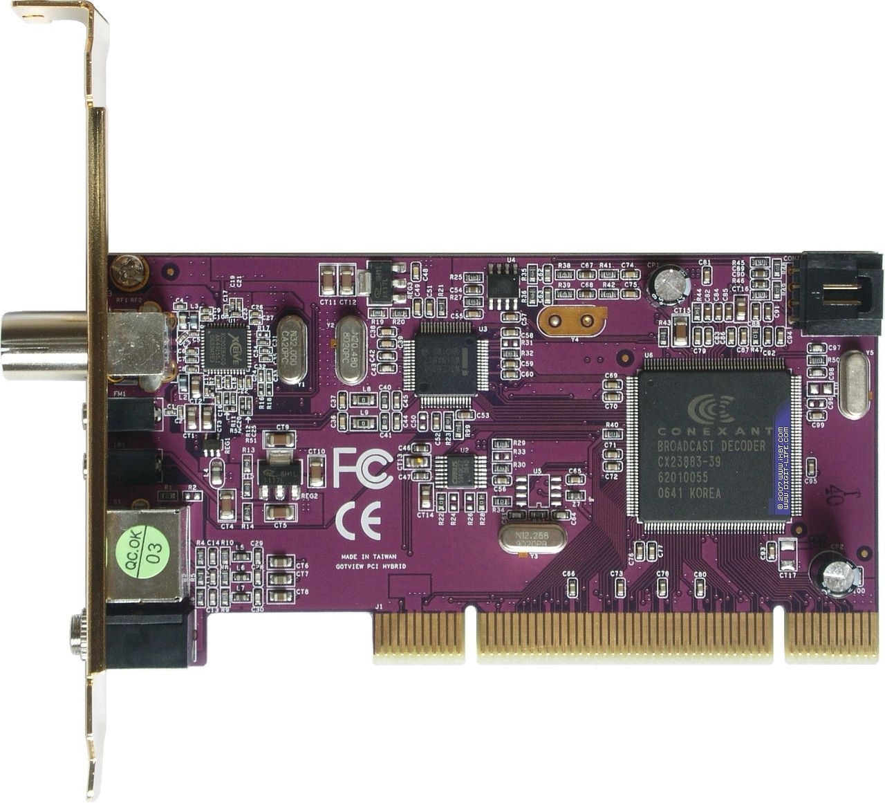 PCI Hybrid иллюстрирует традиционную для последних продуктов компании заботу о владельцах компактных корпусов и barebone-систем, плата имеет стандартную длину при низкопрофильном дизайне. В традициях GOTVIEW и сочетание фиолетового текстолита и позолоченной планки (как ни странно, в отличие от комплекта PCI DVD3 Hybrid, дополнительная планка для установки в низкопрофильные корпуса покрытия не имеет).