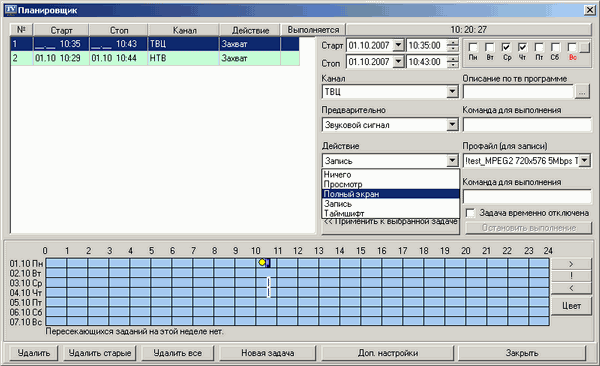 - Поддержка программы телепередач на неделю с возможностью закачки обновления