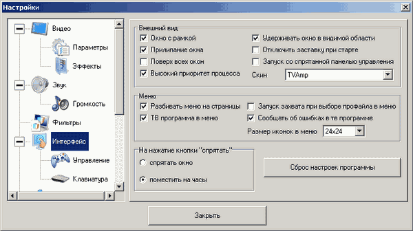 Раздел, посвящённый настройкам интерфейса, содержит массу настроек — от выбора оформления до показа телевизионной программы в меню.