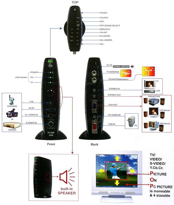 - Расширенный набор видео входов: TV, VGA, Video, S-Video, YCbCr
