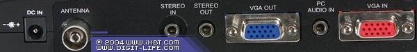 Разъем для подключения питания, антенный коннектор, аудио- и VGA-разъемы расположены на задней панели.
