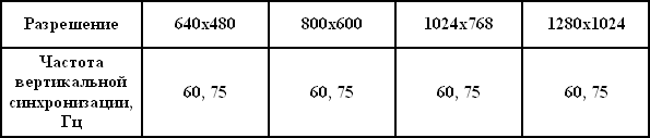 - Поддержка чересстрочной развёртки с разрешением до 1280×1024 при частотах 60 и 75 Гц.