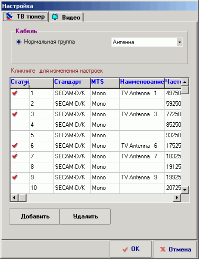 В этом режиме доступны более привычные настройки, в частности редактирование списка каналов и таких параметров, как стандарт цветности, формат звука, наименование и частота.