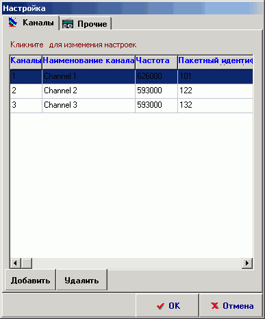 НазваниеКаналЧастотаУровень сигналаСтандарт