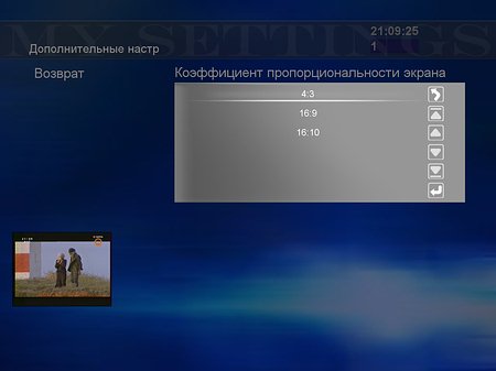 Настройки соотношения сторон позволяют выбрать пропорции экрана (4:3, 16:9, 16:10).