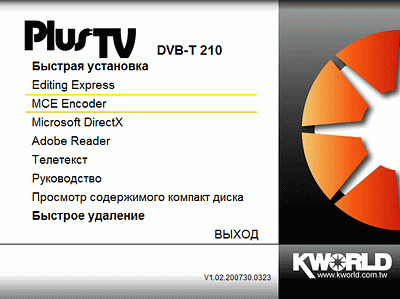 Локализованное установочное меню имеет одноуровневую структуру. Кроме вышеупомянутого пакета Editing Express, на диске можно найти программный кодировщик CyberLink Software Encoder (версия 1.1), позволяющий использовать тюнеры, лишённые аппаратных MPEG2-кодировщиков, с мультимедийными интерфейсами Windows XP Media Center Edition и Windows Vista.