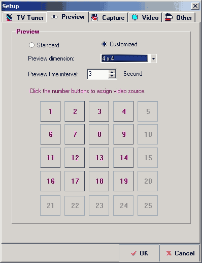 Особенностью подхода Kworld Computer к режиму многоканального предварительного просмотра является индивидуальная настройка источника для каждого окна матрицы, при этом сигнал может поступать даже с видеовхода.