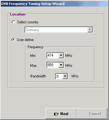 Возможен поиск DVB-T каналов по региону (для открытых московских цифровых каналов рекомендуется Германия) и по заданному диапазону.