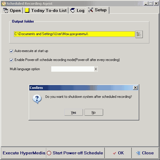 Планировщик умеет отключать компьютер после окончания записи только при использовании фирменной технологии SRPO (Schedule-Recording in PC Power-Off Mode), работающей исключительно с режимом Hibernate.