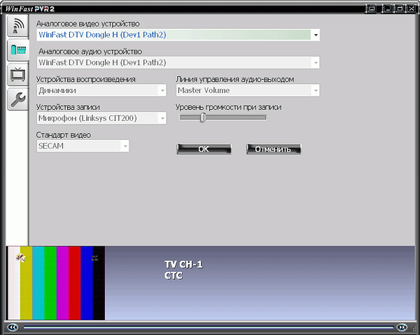 Автоматическое определение стандарта цветности в драйвере на момент написания обзора отсутствовало, и есть все основания полагать, что у WinFast DTV Dongle H оно так и не появится.