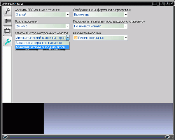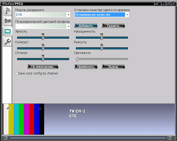 К сожалению, какие-либо настройки шумоподавления в штатной программе отсутствуют. Зато устранено отсутствие масштабирования (overscan), компенсирующего краевые дефекты изображения во время записи/отложенного просмотра, наблюдавшееся в предыдущих версиях WinFast PVR 2 (при использовании EVR масштабирование не работает).