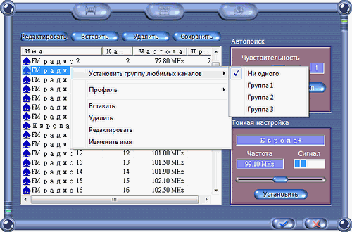 Программа поддерживает отображение логотипа канала, добавление частоты, а также экспорт/импорт пользовательских списков.