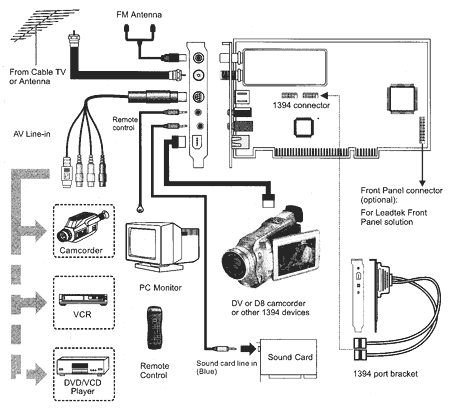 Браться за обзор Leadtek WinFast TV DV2000 мне не хотелось. О чем писать-то, думал я, схемотехника прежняя, знакомая по TV 2000 Expert. Контроллер IEEE1394 (он же FireWire) добавили, так в наше время их разве что в холодильники не встраивают, эпоха цифрового видео, все-таки. К тому же, к работе непосредственно тюнера возможность работы с DV-камерами никакого отношения не имеет. Так, приятный бонус.