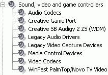 После установки получаем устройство WinFast PalmTop/Novo TV Video в разделе Sound, video and game controllers.