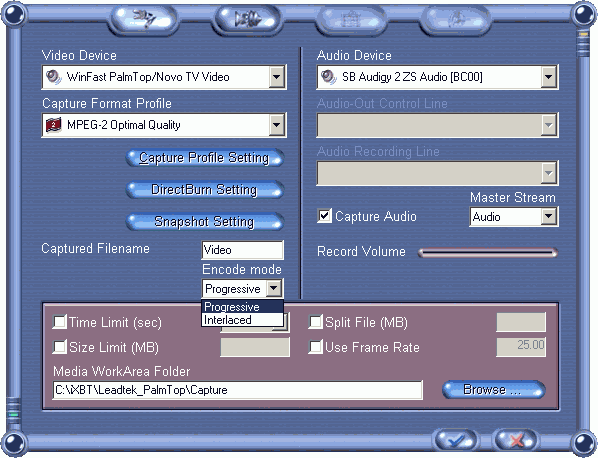 Leadtek является одним из немногих производителей, предоставляющих возможность захвата непосредственно на DVD-диск даже на устройствах без поддержки аппаратного кодирования.