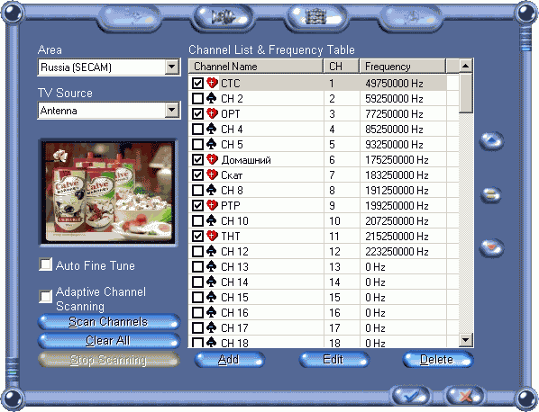 Напомним, что функция Adaptive Channel Scanning осуществляет поиск по всему диапазону, а кнопка Edit предоставляет возможность ручного ввода и редактирования частоты.