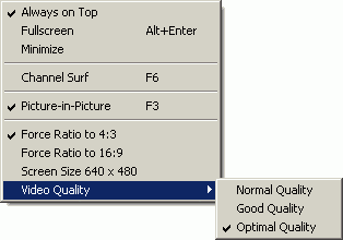 Впрочем, желающие могут ее отключить в меню, вызываемом по правой кнопке мыши. Там же находятся и настройки качества изображения, полностью аналогичные таковым для функции Time-Shifting.