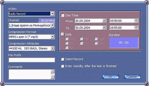Планировщик имеет возможность отключения компьютера поcле окончания записи.