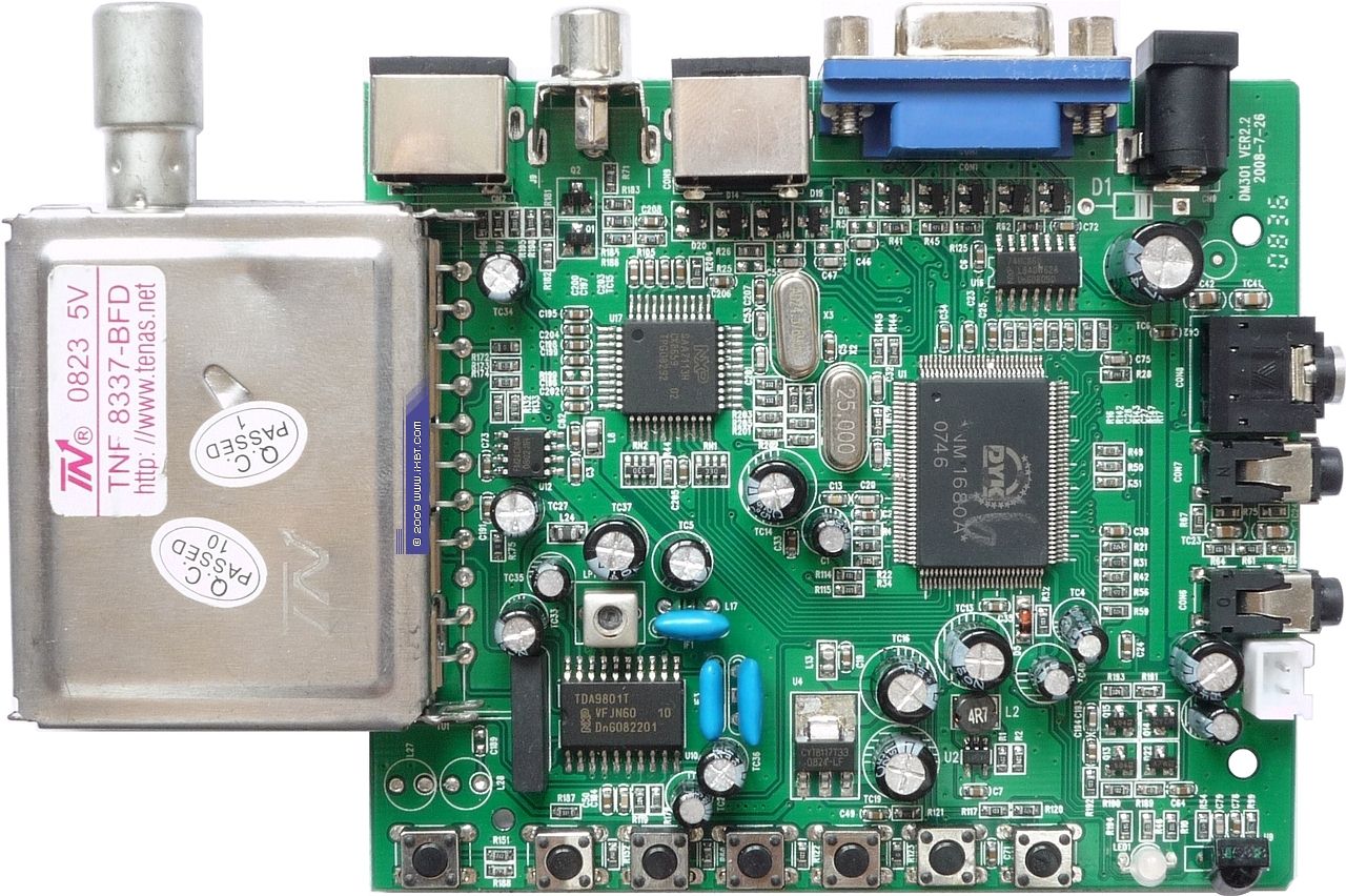 Как и у KWorld PlusTV TVBox 1440ex, половина приёмника классической компоновки TNF 8337-BFD от Shenzhen Tenas Electronic Co., Ltd находится за пределами платы. ВЧ-блок работает в паре с VIF-PLL демодулятором TDA9801T производства бывшего полупроводникового подразделения Philips Electronics, а ныне самостоятельной компании NXP.