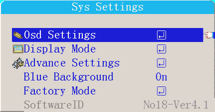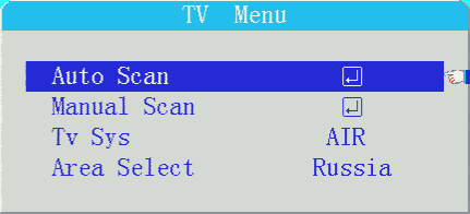В разделе Setup доступны включение/выключение синего (точнее, бирюзового) экрана при отсутствии сигнала, возврат к заводским настройкам и несколько подразделов. Кроме того, здесь можно ознакомиться с версией прошивки тюнера (No18-Ver4.1 у нашего экземпляра).