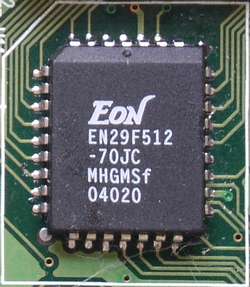 Кроме того, на плате можно найти модуль флэш-памяти EN29F512 (512 Кбит, 5В) от Eon Silicon Solution, Inc.