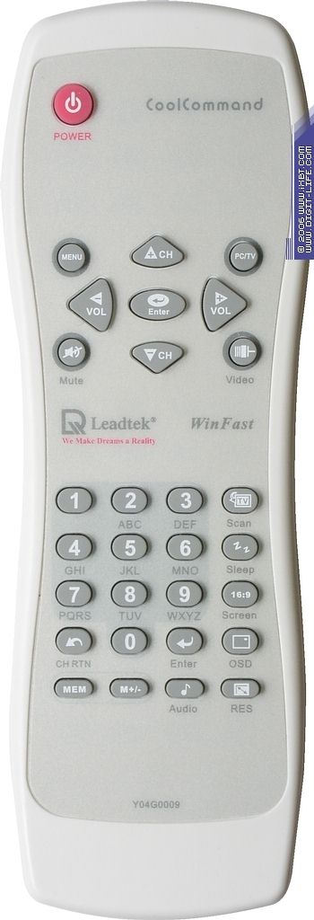 Из-за отсутствия 12 верхних кнопок фирменный пульт управления выглядит несколько непривычно для человека, знакомого с PCI-тюнерами от Leadtek. Впрочем, это не сказалось на хороших эргономических характеристиках. Интересно реализовано переключение каналов при помощи цифровых кнопок. При отсутствии сигнала тюнер автоматически переключается на следующий настроенный канал. Кнопка Scan на пульте вызывает меню настройки каналов. Кнопка Audio переключает режим звука (Stereo, Mono, SAP). При переключении разрешений учитываются одинаковые режимы с разными частотами обновления. Кнопка MEM вызывает список избранных каналов, M+/- позволяет осуществлять оперативное добавление/удаление.