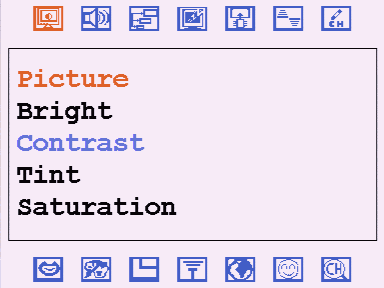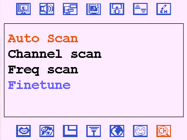 Экранное меню относится к разряду псевдографических, что способствует малому времени задержки при переходе между пунктами. Оригинальна реализация — меню содержит 14 (!) разделов, иконки которых расположены в два ряда, при одноуровневой структуре. Несмотря на первоначальные опасения, неудобства в использовании такая схема не вызывает. Возможно, помогает её схожесть с организацией меню достаточно большого количества мониторов. При первом обращении к меню при каждом включении тюнера почему-то вызывается не ожидаемый первый пункт, а предложение сбросить настройки. Иначе как перестраховкой такой подход назвать не получается.