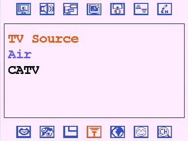 Перед ним можно найти выбор диапазона (антенный/кабельный).